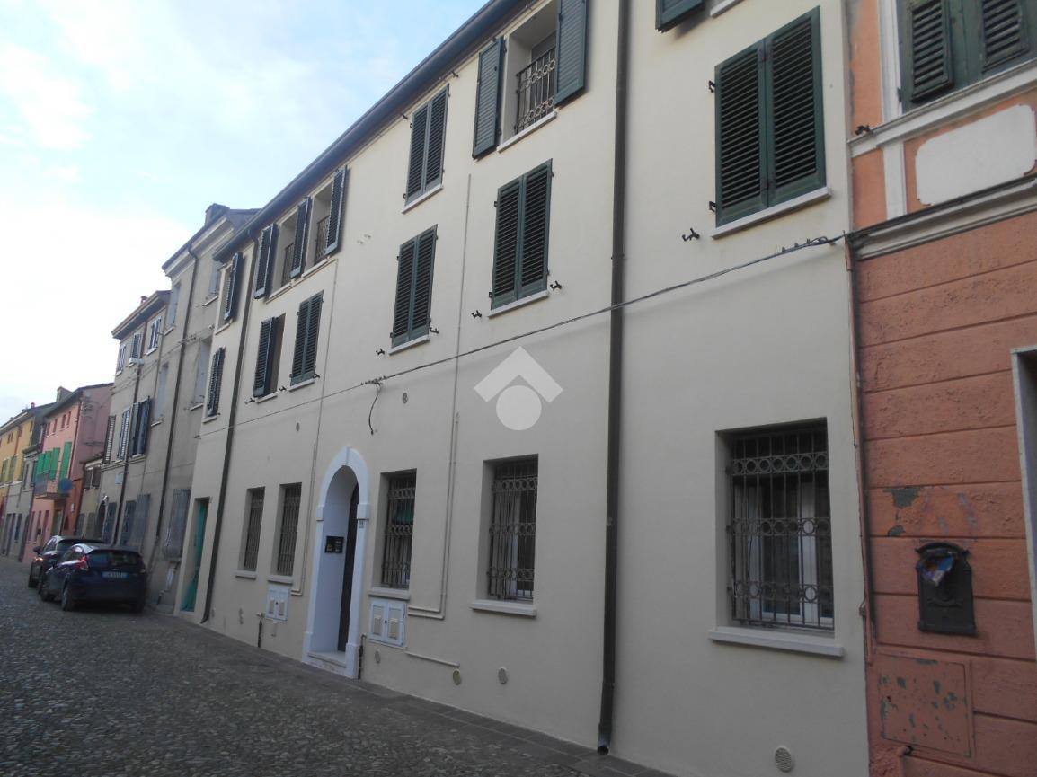 Comacchio: in pieno centro storico proponiamo appartamento con ottime rifiniture posto al secondo ed ultimo piano composto da ingresso, ampio salone, cuinotto, ripostiglio, camera da letto matrimoniale, camera da letto doppia, bagno con box doccia. Riscaldamento autonomo a gas metano, due climatizzatori, infissi in pvc con taglio termico. Completa la proprietà un magazzino al piano terra e due posti auto privati all'interno della corte condominiale.